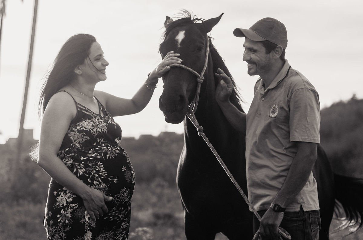 O Thiago é apaixonado por cavalos, quando eu descobri isso, propus ao casal que as éguas deles também participassem do ensaio, o casal amou a ideia e aceitou na hora, Ivone até comentou que depois quer voltar com Alice e fazer um ensaio lá com ela.